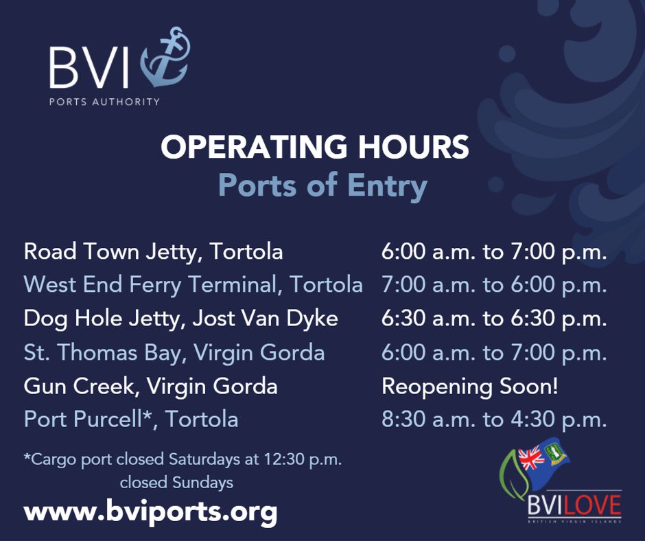 The BVIPA manages a total 7 sea ports throughout the Territory which include, Cargo, Ferry and Cruise facilities. We are now the managing authority for all official Sea Ports within the British Virgin Islands including the 60ft wide, 1,312 ft. long cruise pier that can berth ships up to a maximum tonnage of 180,000 GRT and our main Cargo Port of Purcell can currently facilitate 10 ships at any given time.